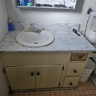 Replace bathroom sink, cabinet and countertop |